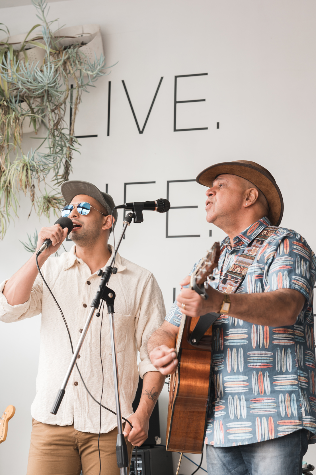 Singer, acoustic guitar and electric. Mostly duo vibe, the extra guitarist comes in for different songs while the other takes a break.