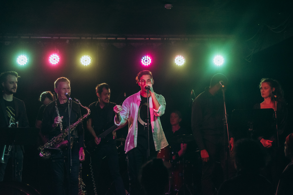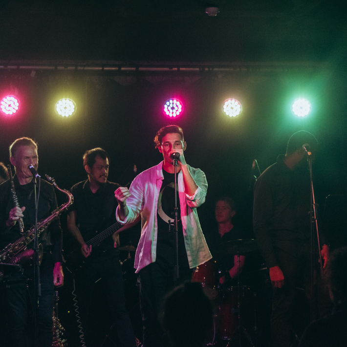 We are a 10 piece band which consists of 3 vocals, 3 piece horn section, guitar, bass, keyboard and drums.